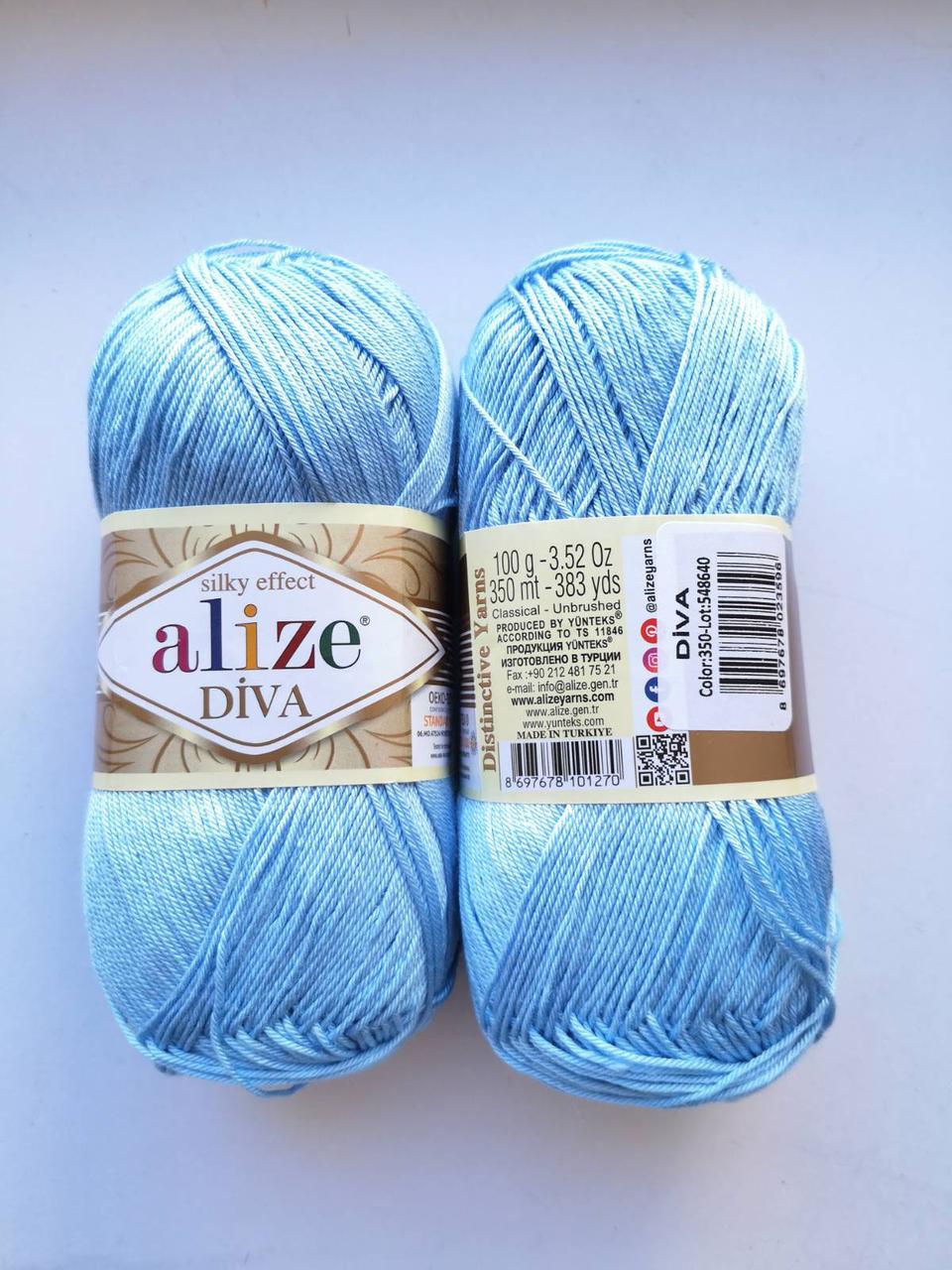 Пряжа Діва (Diva) ALIZE колір блакитний 350, 1 моток 100г
